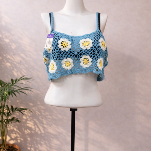 blue summer crochet top-M